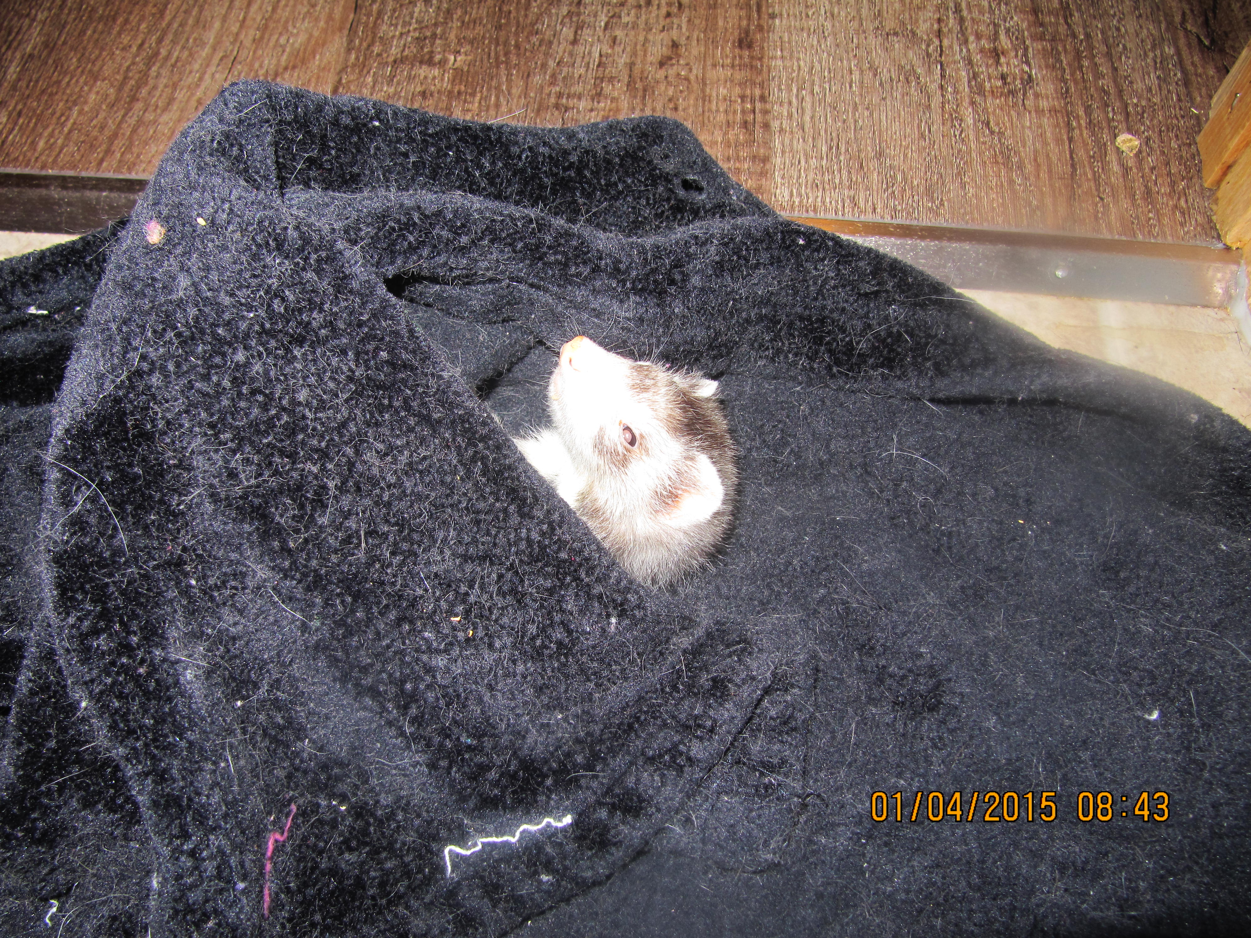 Our ferrets blow their coats twice a year. Around the end of February into March, ferrets will start shedding that beautiful thick luxurious winter coat. Your ferret may “blow” his coat in one or two days coating everything in sight with fur or he may decide to spread the shedding over several weeks with tufts of fur left behind in his hammock.
