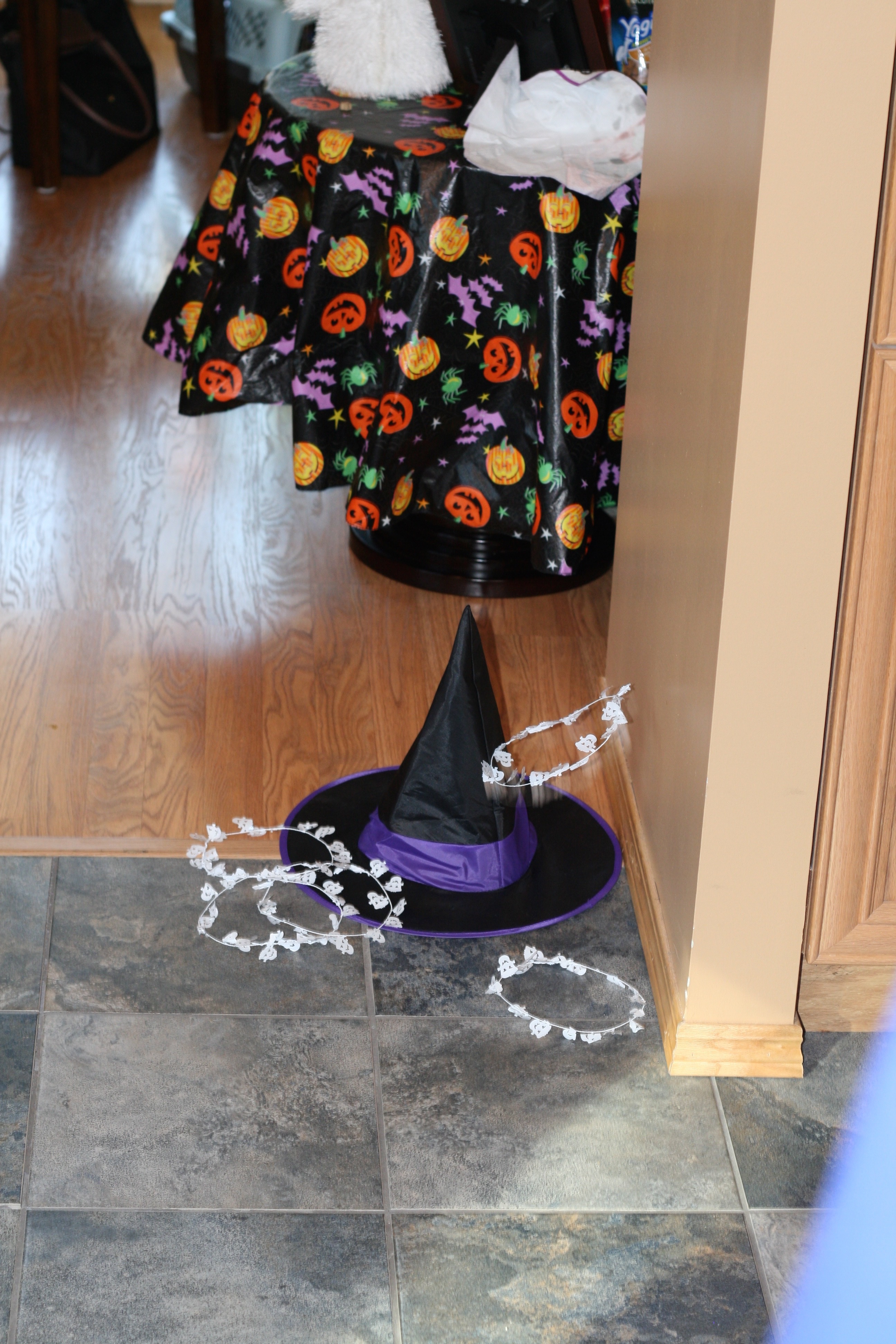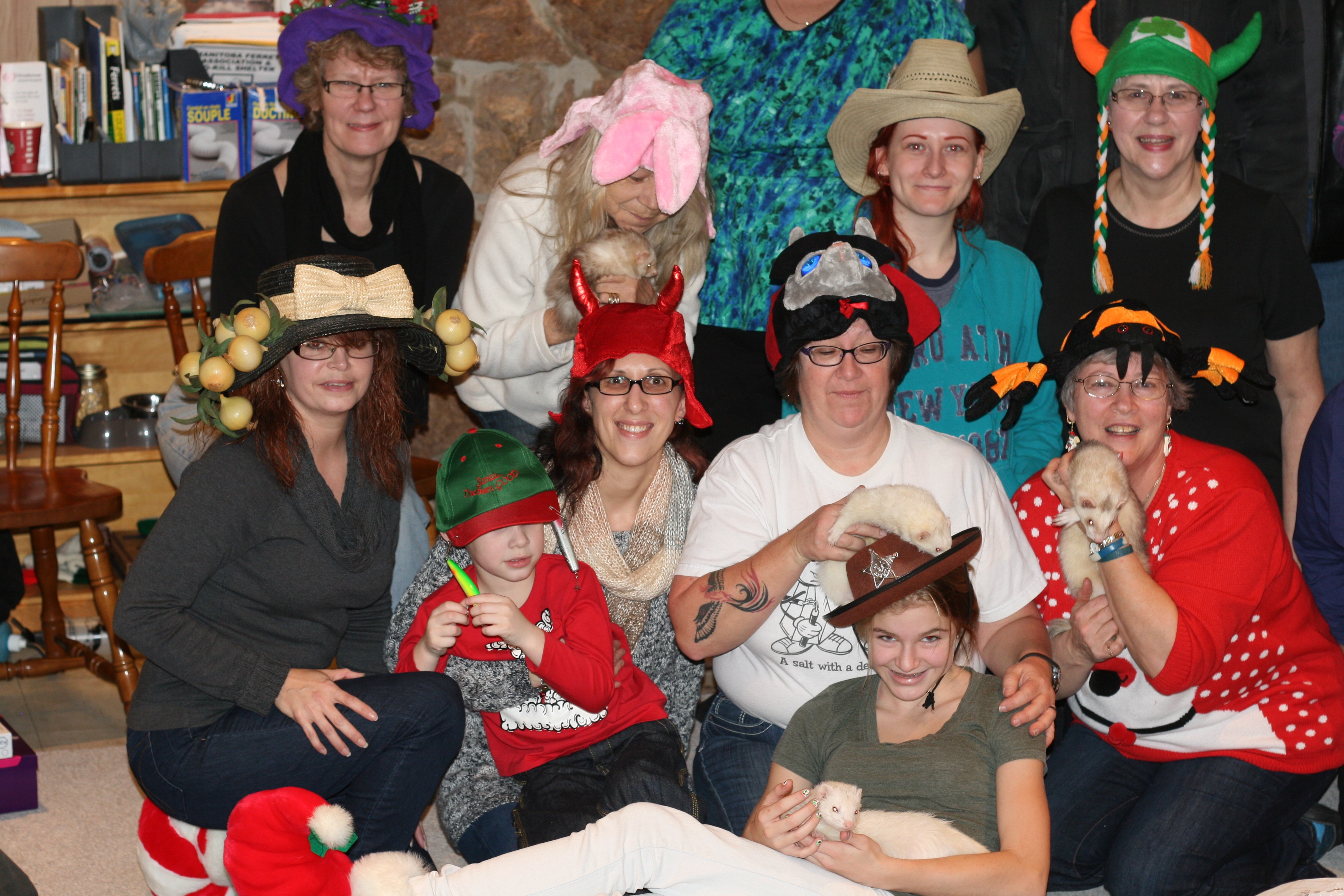 We let the ferrets have a break and the humans played Witch Hat Ring Toss. Sounds easy, right? Well some of us couldn’t even get one ring on the hat! Kevin, Adrienne, Zoe, Melissa all scored one ring so their names went into the hat and Melissa won.