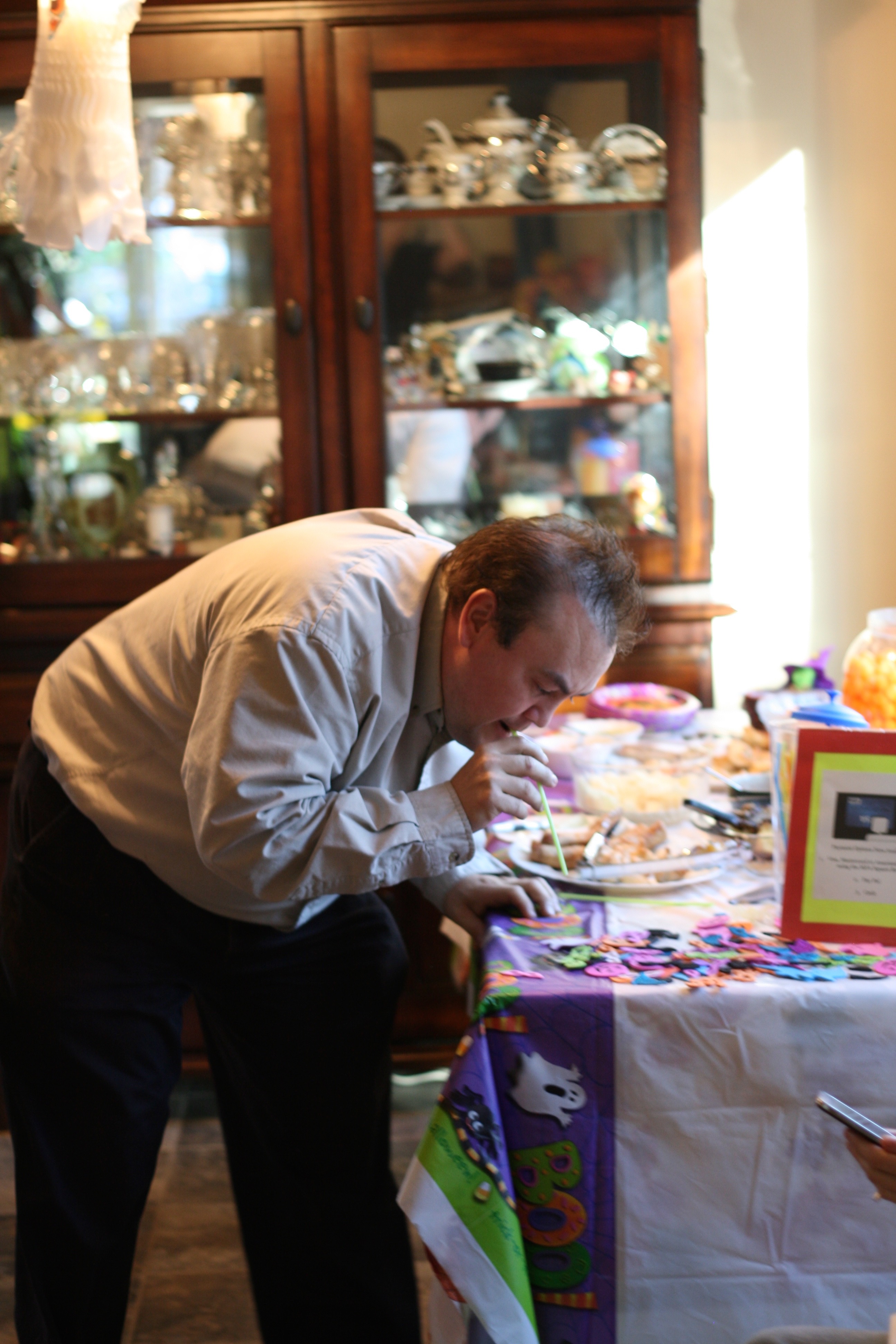 The party started with Musical Pumpkins. There were some pumpkins that slid across the floor “accidently” and in the end Kevin was left standing on the last pumpkin!