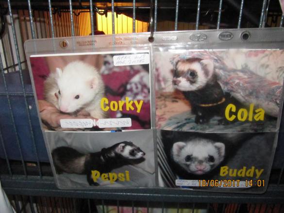 The lesson I  learnt was thank goodness I was an “organized freek” because if the roles had been reversed, family and friends would have had no trouble knowing which ferrets belonged to me personally and which ferrets had to be re-homed within the shelter community. All my cages are labelled. I have their picture and on the backside are a the most important details.  I even have a copy of their latest vaccinations.