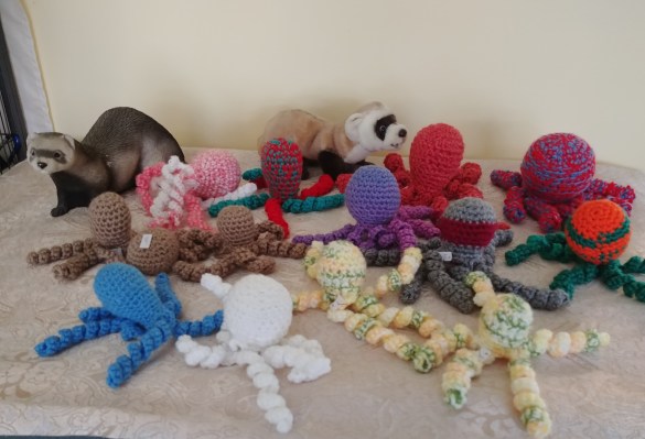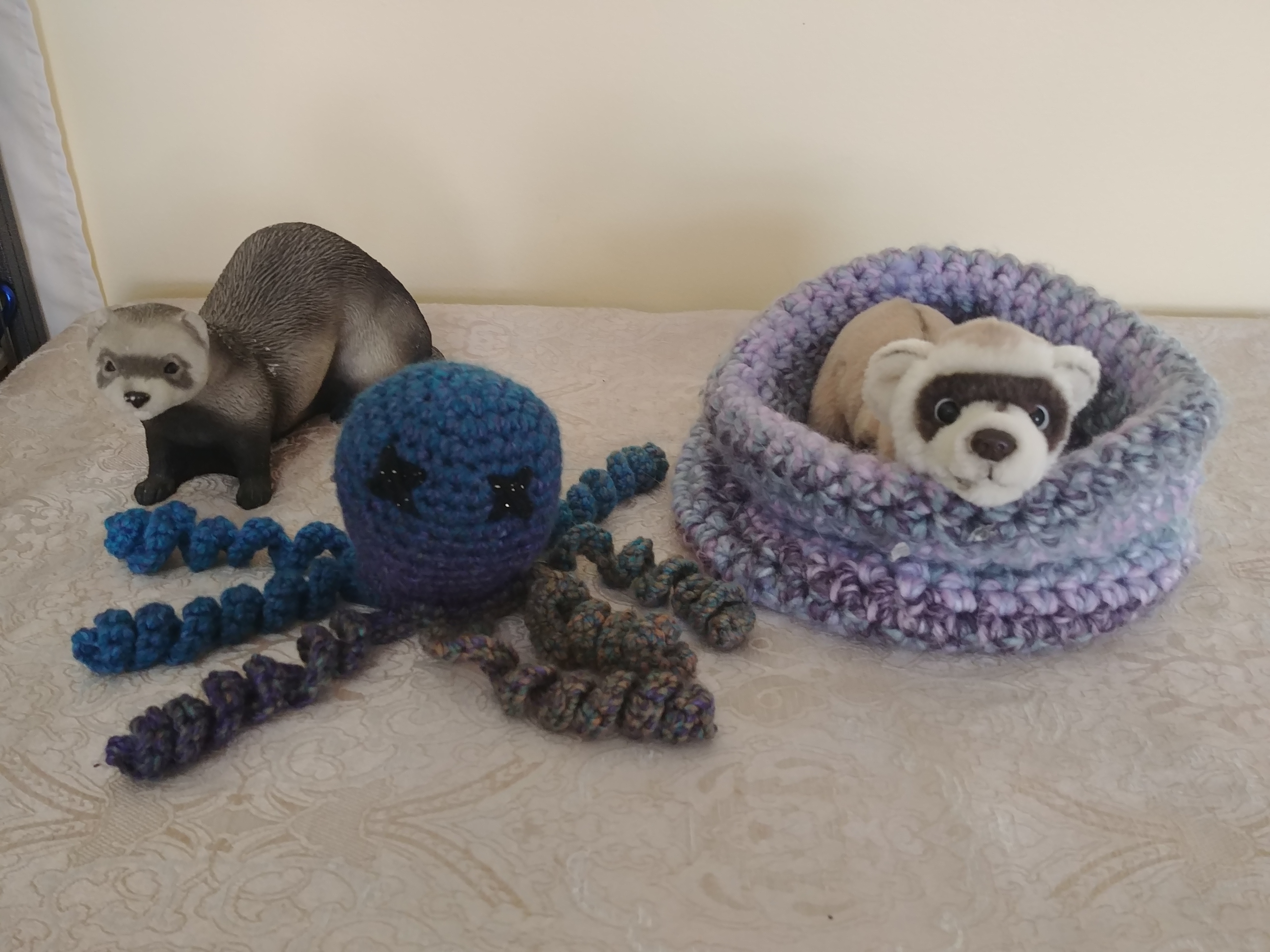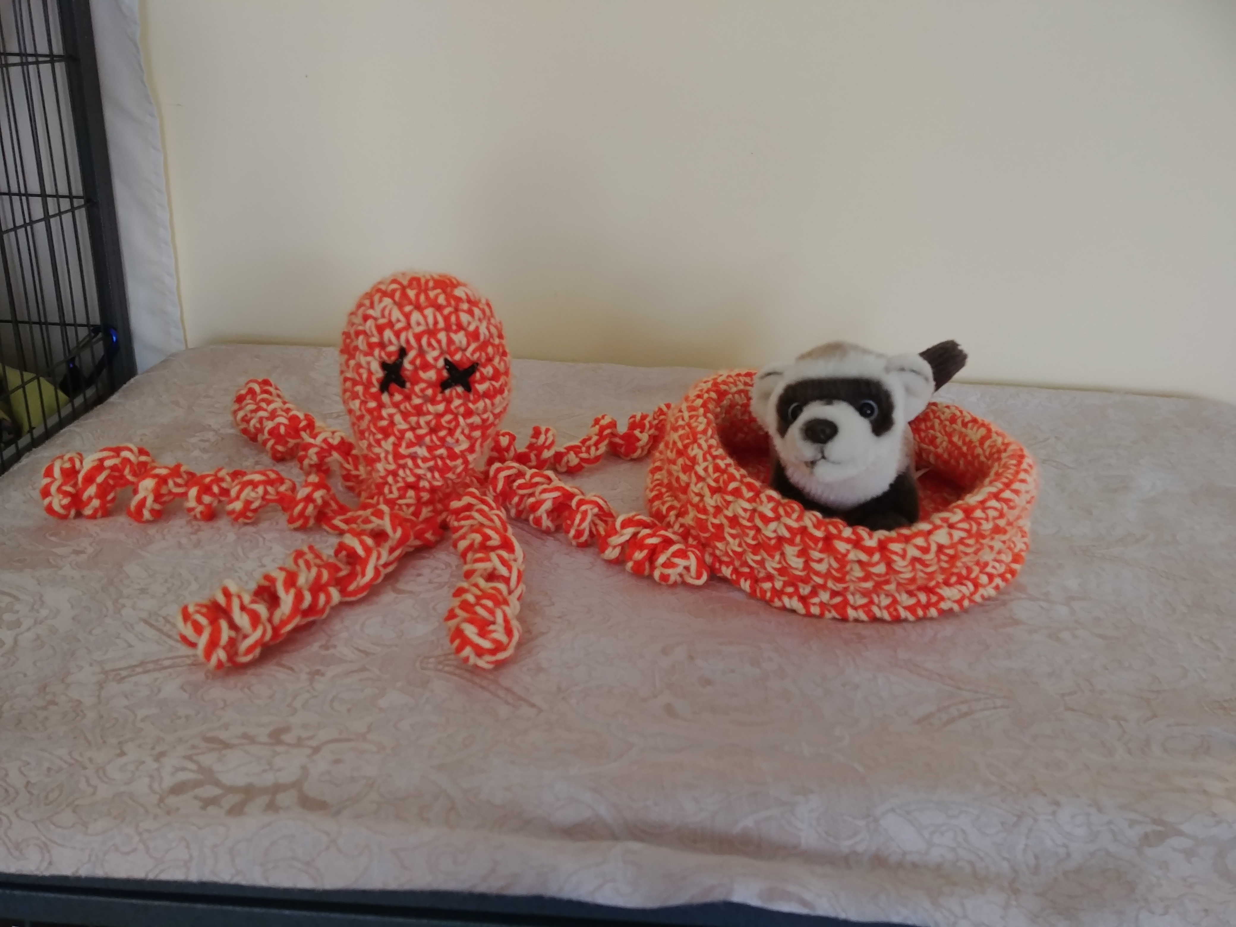 high side medium circle bed and octopus stuffie $20.00 Payment by: E-transfer to manitobaferrets@gmail.com