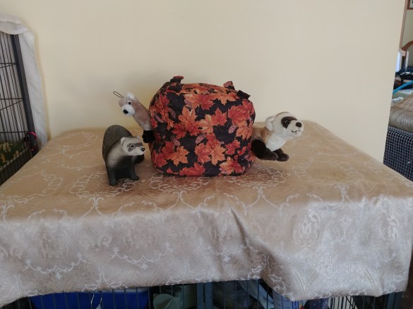 fall leaves cube, winter weight, 8 /2 inches wide by 13 inches long and 8 inches deep code A10. $35.00 LARGE CUBES – $40.00 Payment by: E-transfer to manitobaferrets@gmail.com