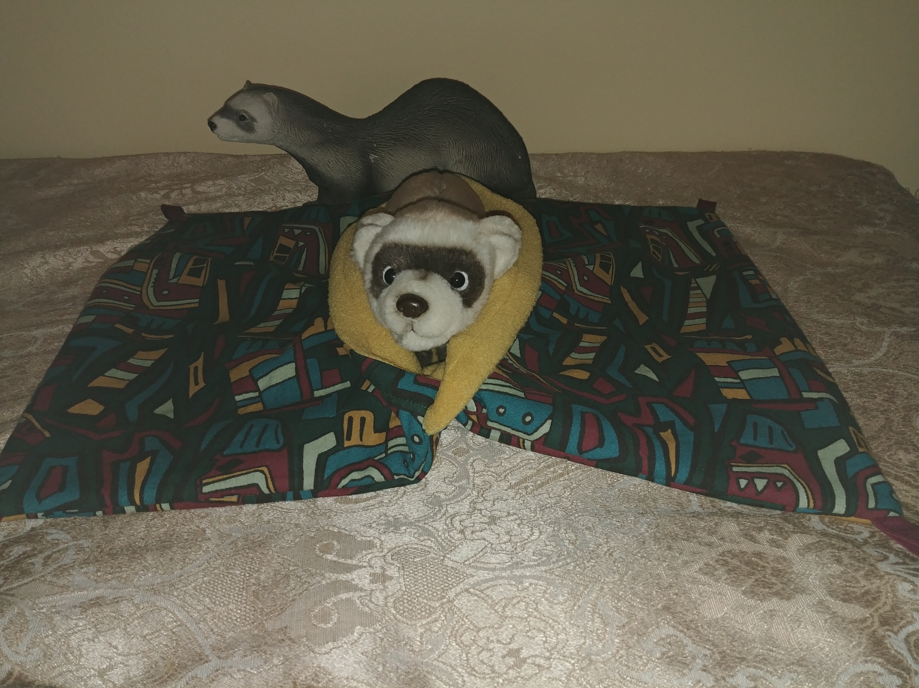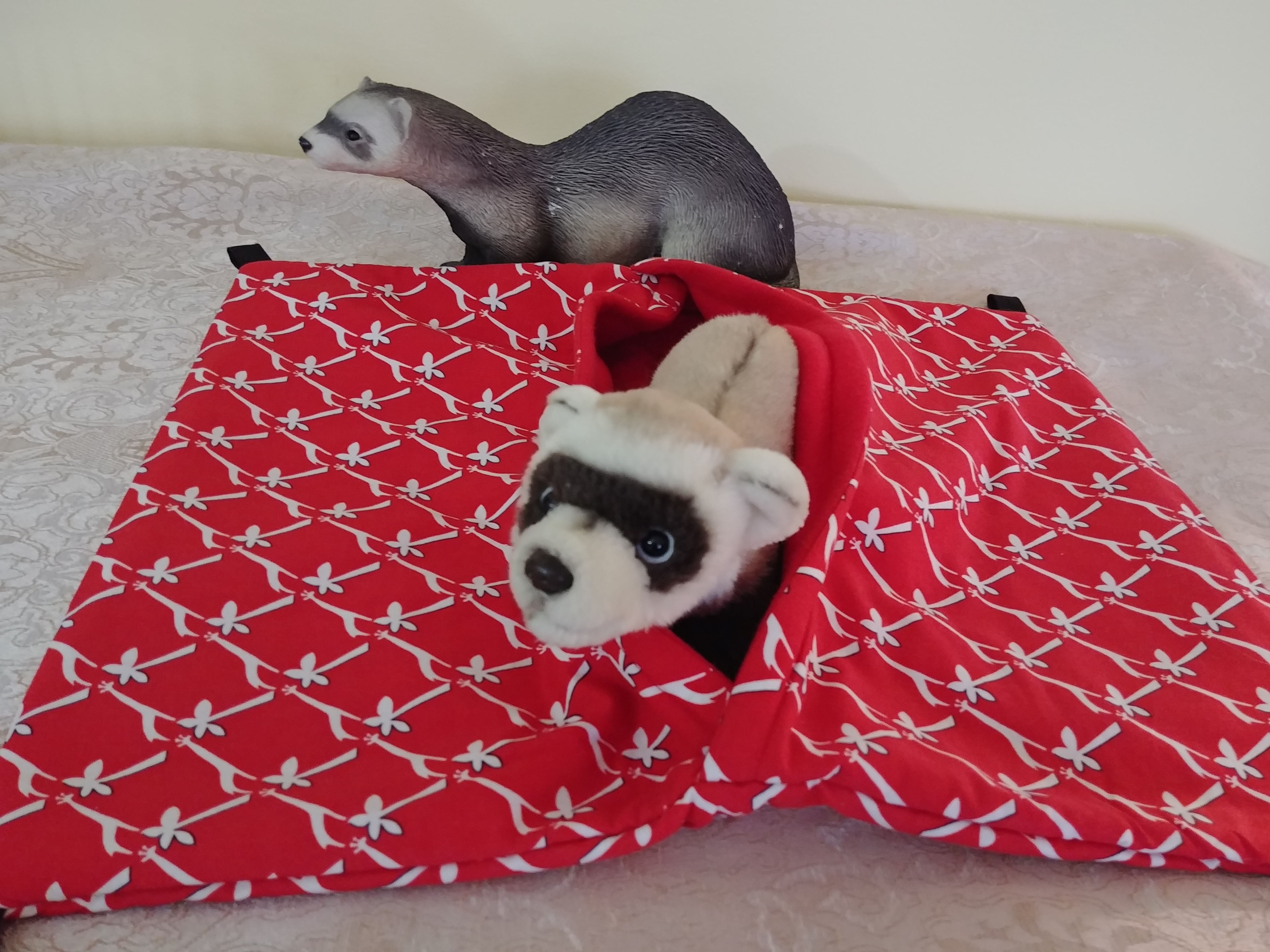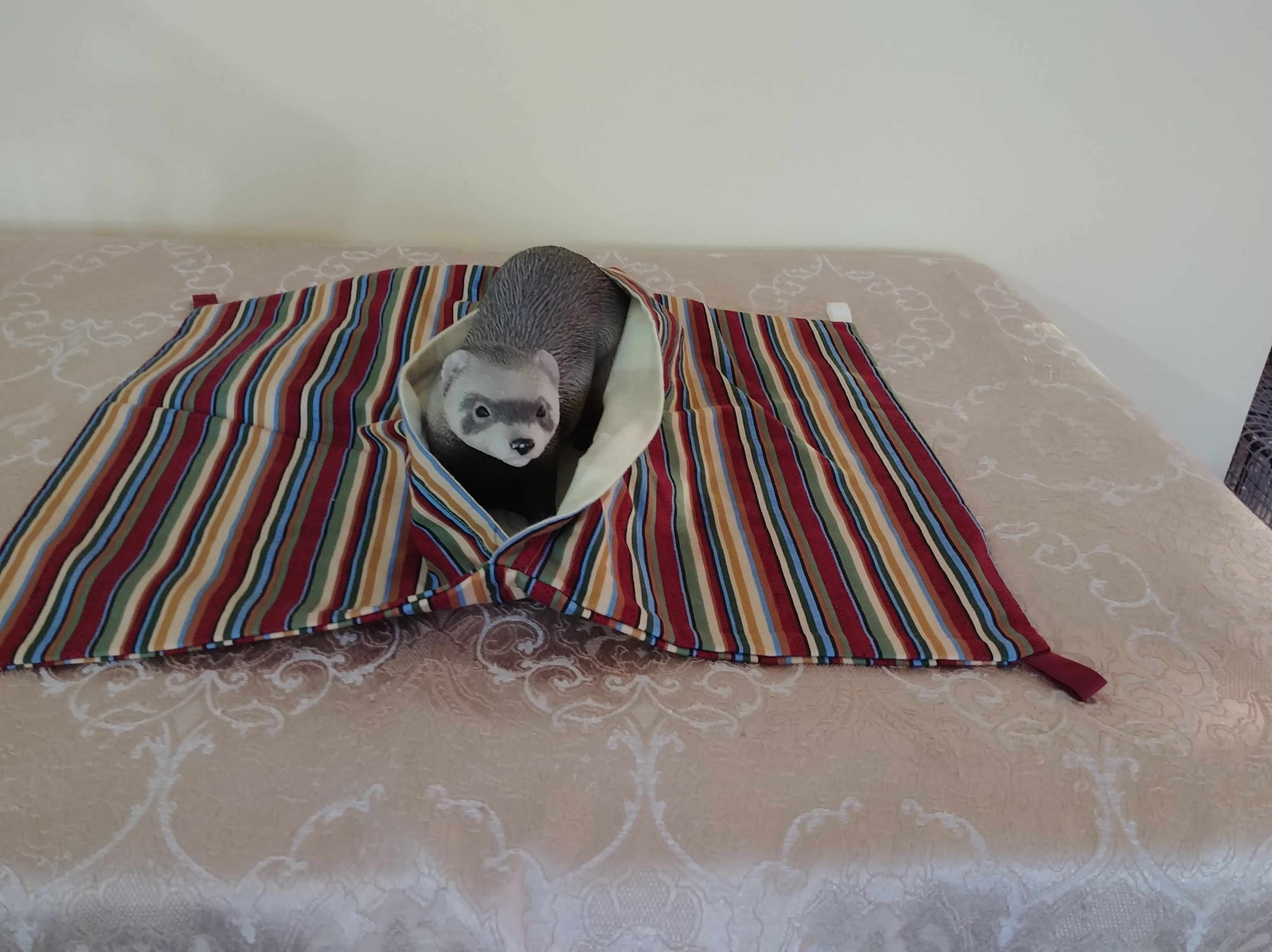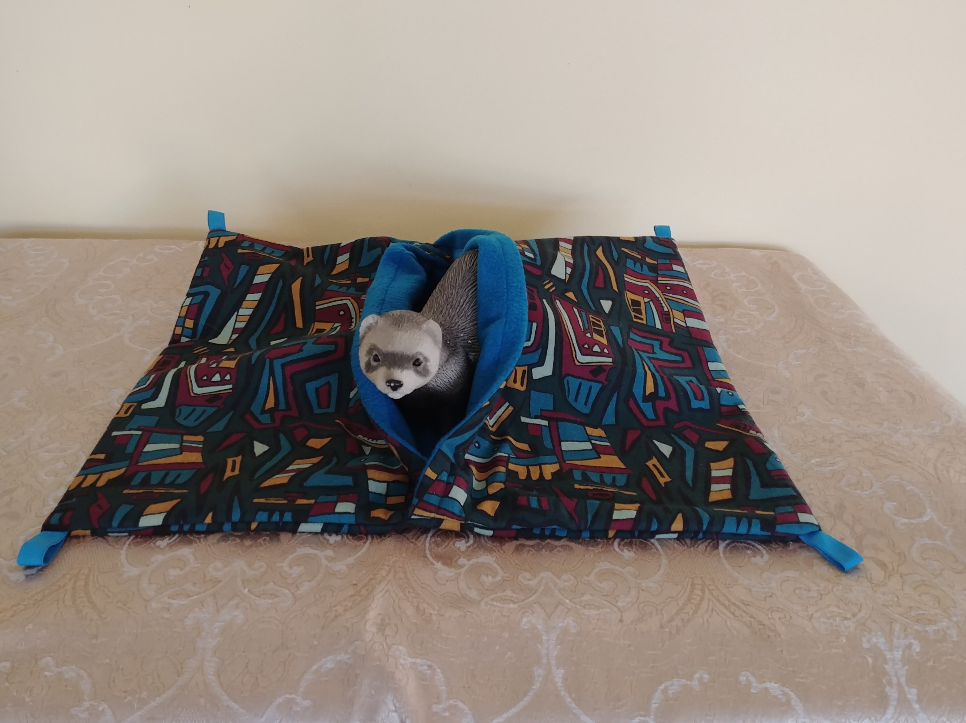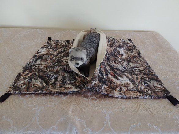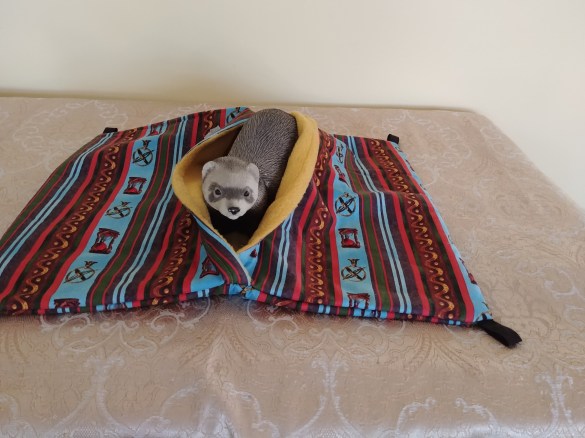 large mosaic sleep sack with cream lining,17 inches Wide by 13 inches long #61, $20.00 LADDER COVERS $10.00 each Payment by: E-transfer to manitobaferrets@gmail.com