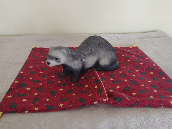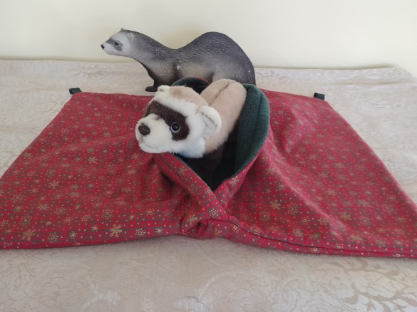 The Manitoba Ferret Association is very lucky that one our members is a fabulous seamstress and has volunteered her time to make Split Hammocks, Cubes, Hanging Sleep Sacks , Knit circle beds, Summer Mesh hanging beds, Christmas theme split hammocks, Ferret Nation Ladder Covers, as a way for us to raise monies to support the many ferrets in our shelter.