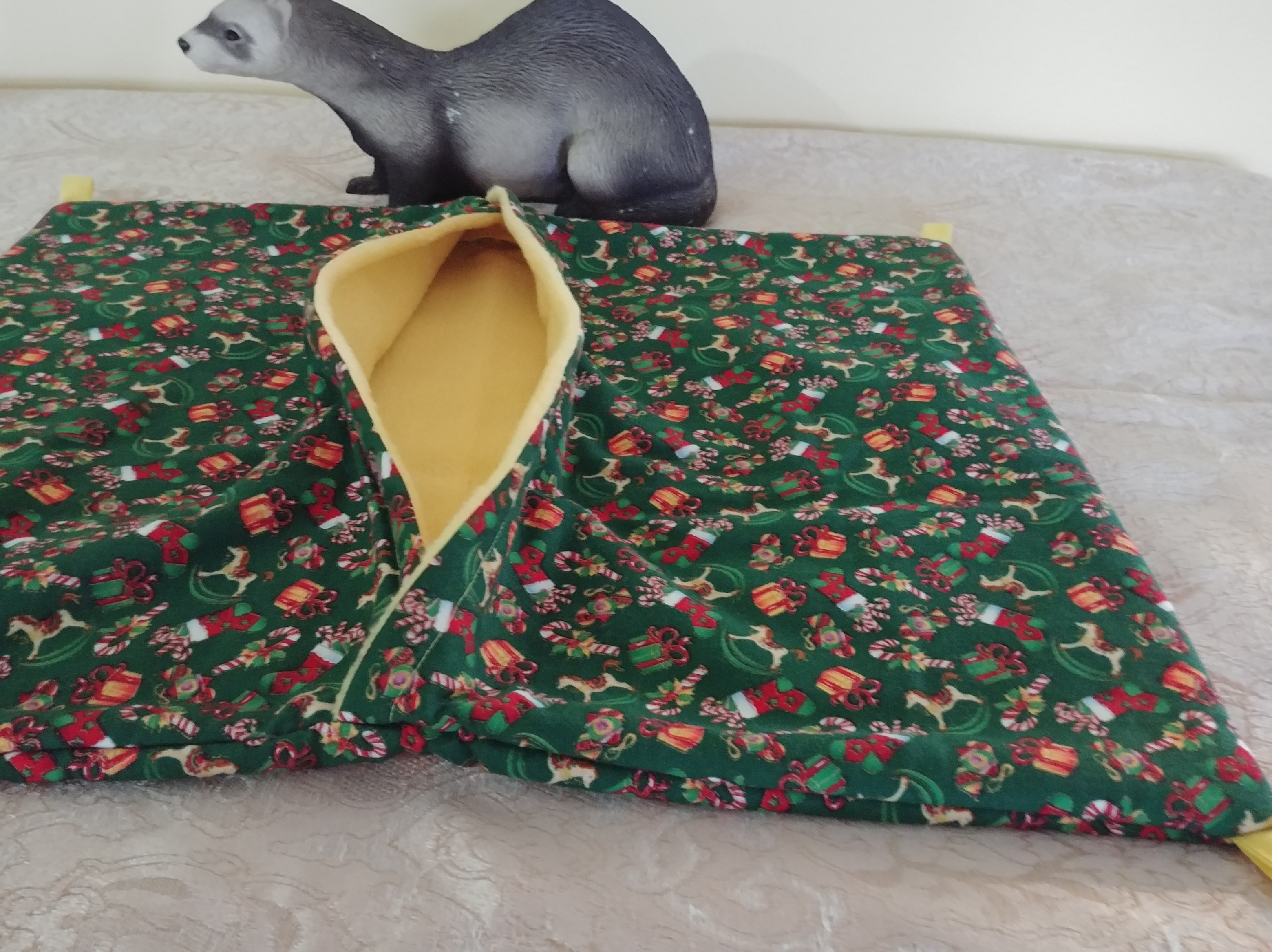 birdhouse style hanging sleep pouch $15.00 Payment by: E-transfer to manitobaferrets@gmail.com CHRISTMAS BEDDING AND TOYS Payment by: E-transfer to manitobaferrets@gmail.com