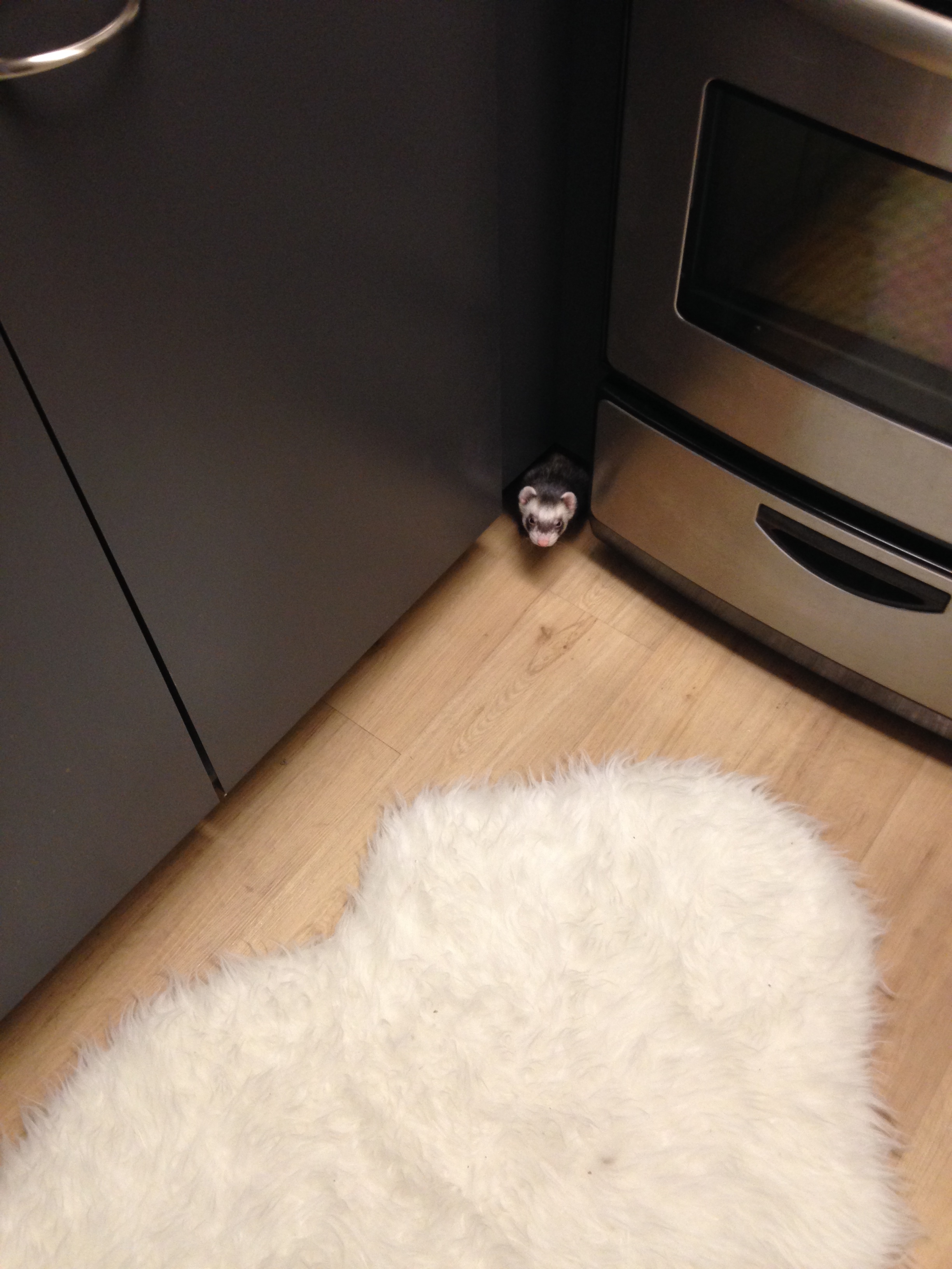 Don’t underestimate the abilities of a ferret, they are more than capable of getting into or under the smallest of openings and able to move heavy things outs of their way. Ferret proofing is not a one time job, it is a constant endeavour that our monsters prove time and again.